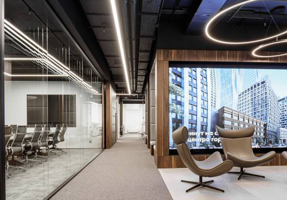 Описание проекта: Новый головной офис Level Group, одной из лидирующих компаний столичного рынка девелопмента, начал свою работу в БЦ Wall Street на Валовой улице – он расположился на 4-ом этаже бизнес-центра. Одной из особенностей проекта является высокая доля импортозамещения – 85% всех материалов и оборудования, начиная от фальшполов и заканчивая системами освещения, были произведены в Вологде. Оставшиеся 15% пришлись на азиатских (8%) и европейских (7%) производителей.